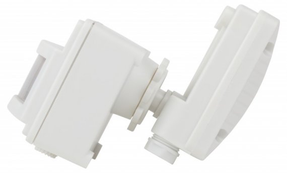 Данный датчик движения крепится к прожектору и применяется для автоматического включения и выключения освещения на территории загородного участка, в темных производственных помещениях, на лестничных клетках. Устройство обнаруживает движение в сенсорной зоне (5-12 метров в зависимости от индивидуальных настроек) и автоматически включает свет. Угол обзора 120 градусов. Мощность 1200 Вт. Имеется возможность регулировки времени задержки выключения (от 10 секунд до 7 минут) и настройки чувствительности к внешнему освещению, что позволяет значительно снизить потребление электроэнергии. Датчик движения экономит денежные средства и упрощает быт. Его можно применять как в помещениях, так и снаружи, благодаря защите от пыли и влаги (индекс защиты оболочки корпуса по международной классификации IP44).