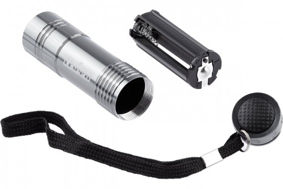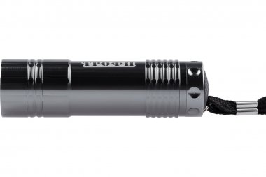Светодиодный фонарь Трофи TM9 ручной на батарейках алюминиевый Трофи TM9 - компактный и простой в управлении LED-фонарь с 9 белыми светодиодами и корпусом из прочного анодированного алюминия. От одного комплекта алкалиновых батареек непрерывно работает 30 часов. Лаконичный дизайн. Металлический карманный фонарик для самых разных целей. Всегда под рукой, когда нужно что-то оперативно подсветить. В комплекте мягкий прочный ремешок для удобной переноски фонаря на запястье. Корпус изготовлен из анодированного алюминия. Это прочный материал, устойчивый к возникновению царапин и сколов при возможных падениях и ударах. Трофи ТМ9 прослужит долго и сохранит свой приятный внешний вид даже спустя годы использования. Яркий ровный свет обеспечивают 9 современных белых светодиодов. Они не перегорают, не тускнеют со временем и не нуждаются в замене. При этом очень экономичны - от одного комплекта алкалиновых батареек (3хААА) фонарь непрерывно работает 30 часов! Дальность светового луча - более 15 метров.