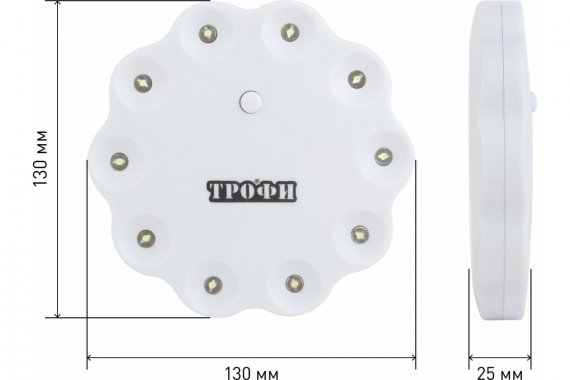 10 ярких светодиодов эргономично расположены по кругу, за счет чего обеспечивается качественный ровный свет. Корпус изготовлен из ударопрочных материалов, устойчив к возникновению механических повреждений при возможных падениях или ударах. Его форма выполнена в виде плоского цветка - это существенный бонус, который позволяет экономить пространство при транспортировке. Светодиоды также имеют защиту: они вдавлены в корпус, каждый из них расположен в отдельном гнезде. При внезапной поломке нескольких LED элементов сразу другие продолжат работу и обеспечат нужный свет.