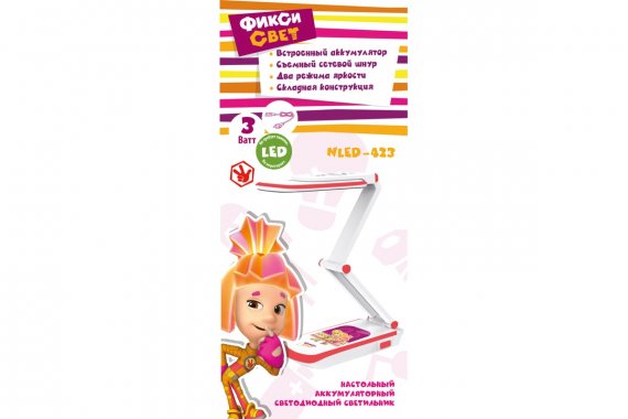 Настольный светильник ЭРА NLED-423-3W-R ФИКСИКИ светодиодный аккумуляторный красный Детский настольный светильник лицензированной серии "Фиксики". Портативная светодиодная модель с ёмким встроенным аккумулятором и съёмным шнуром в комплекте. Два режима яркости, тёплый комфортный для глаз свет. Особая складная конструкция позволяет превратить настольный светильник в компактный "кирпичик" размером всего 7,5 на 17,5 сантиметров. Это возможность взять устройство с собой куда угодно! Ребёнок не захочет расставаться с героями полюбившегося мультфильма ни при поездке в гости к бабушке, ни при субботнем отдыхе на даче. Почитать теперь можно даже в полевых условиях: в дороге, загородном доме или палатке. А уютный приглушённый свет (при переключении на режим ночника) поможет малышу быстро уснуть даже в новой обстановке.Не допускайте работы в тлеющем режиме светодиодов и полной разрядки аккумулятора! ВНИМАНИЕ! Не оставляйте светильник подключенным к сети более 12 часов во избежание избыточной зарядки и последующего выхода аккумулятора из строя! До следующей подзарядки полностью заряженный светильник должен быть использован в автономном режиме не менее двух часов. Не допускайте работы в тлеющем режиме светодиодов и полной разрядки аккумулятора! Если аккумулятор полностью разряжен, подключите светильник к сети и заряжайте в течение не менее 12 часов. В этом случае светильник заработает не сразу и не будет работать во время зарядки от сети. Если светильник надо зарядить после полной разрядки, на время подзарядки он должен быть выключен.