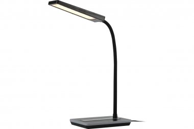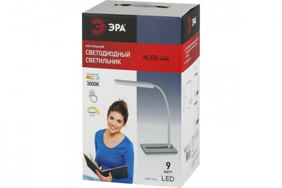 Настольный светильник ЭРА NLED-446-9W-BK светодиодный черный Настольный светильник ЭРА NLED-446-9W-BK со светодиодами (LED) в качестве источников света. Оснащен сенсорным управлением c возможностью регулировки яркости освещения, 4 уровня. Есть регулировка яркости освещения, 4 уровня. Гибкая стойка позволяет настраивать комфортную высоту плафона и направлять свет под любым углом. Современный актуальный дизайн в стиле хай-тек с серыми вставками.
