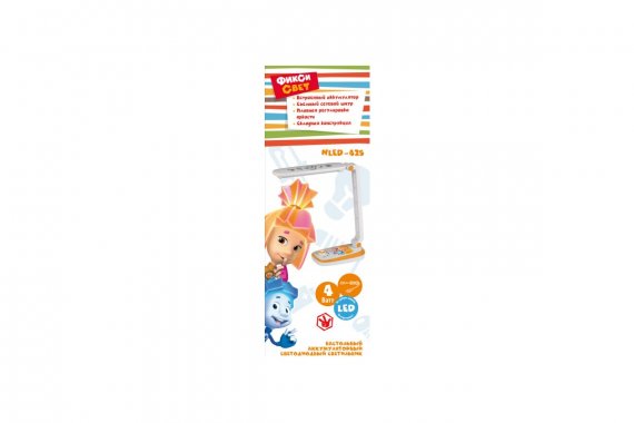 ЭРА NLED-425-4W-OR - светодиодный настольный светильник с персонажами популярного мультфильма "Фиксики". Он отлично выручит, если в доме неожиданно отключили электричество. Работает автономно до 4 часов в зависимости от режима. Часто этот светильник используют в качестве бытового фонарика. Можно выбрать нужный уровень яркости с помощью механического диммера-"крутилки" на основании. Свет легко направить как удобно поворотом плафона относительно стойки. У светильника съемный сетевой шнур в комплекте и складная конструкция для легкости его перевозки и компактного хранения.