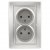 1-204-03 Intro Розетка 2х2P, 16А-250В, IP20, СУ, Plano, алюминий (10/100/1500) Розетка двойная 2-я серии Intro Plano скрытой установки цвет алюминий 1-204-03. Номинальные характеристики 16А 250В. Розетка выполнена из керамики, укомплектована одноместной рамкой, оснащена винтовыми клеммами. Клеммы с двумя отверстиями позволяют соединять соседние розетки шлейфом. Установка в подрозетник производится как на монтажные лапки, так и на винты.