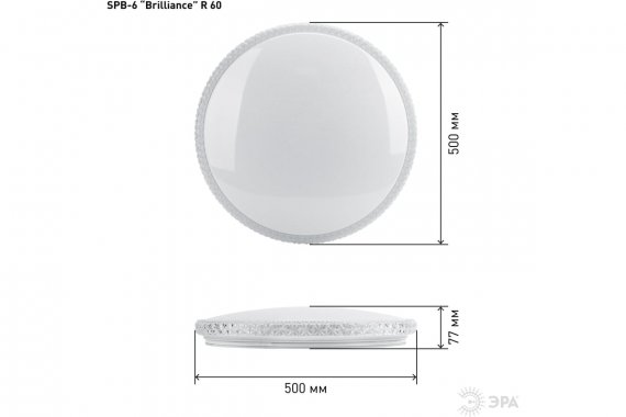 Светильник потолочный светодиодный ЭРА Классик с ДУ SPB-6-60-RC "Brilliance" 60Вт 3000-6500К 4800Лм круглый Люстра потолочная светодиодная с пультом управления SPB-6 "Brilliance" это элегантность и практичность!Управляемая светодиодная люстра имеет внешние размеры 500*77 мм, что позволяет ей пропорционально вписаться в пространство любой площади.Главной особенностью электросветильника является возможность управления пультом. Такая функция сильно облегчает процесс эксплуатации. Вы также можете регулировать диапазон цветовой температуры от 3000 до 6500 К.LED люстра имеет светодиод с холодным дневным свечением. Большим плюсом является равномерное распределение светового потока. Ваши глаза будут защищены от воздействия прямого света.Люстра имеет уникальный дизайн. Блестящая полоска с имитацией бриллиантов, расположенная по окружности плафона, придает модели неповторимый шик. Такая люстра станет украшением гостиной или спальни, оформленных в различных стилях.Светильник "Brilliance" имеет средний срок службы в 50 000 часов и I класс электробезопаности. Приобретайте SPB-6 "Brilliance" и открывайте новое вместе с брендом ЭРА!