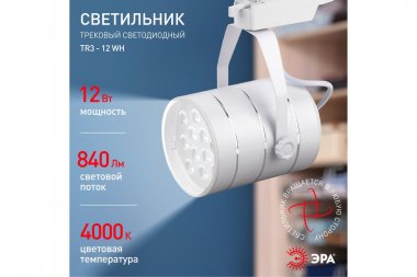 Эра Б0032106 Трековый светильник однофазный TR3 - 12 WH светодиодный 12Вт