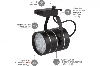 Трековый светодиодный светильник TR3 - 12 BK от компании Эра расставит необходимые акценты в пространстве помещения. Он выделит конкретный объект, создаст выразительную подсветку товара.