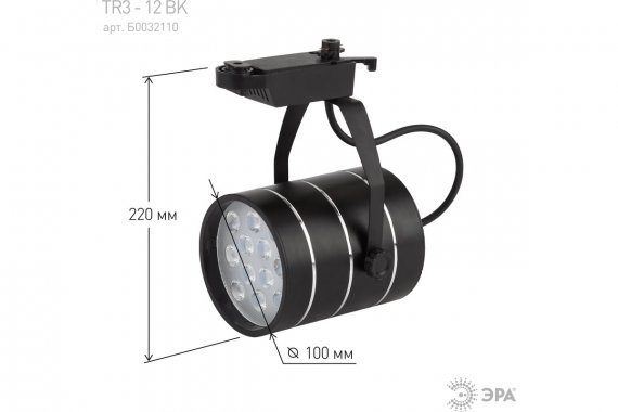 Эра Б0032110 Трековый светильник однофазный TR3 - 12 BK светодиодный 12Вт