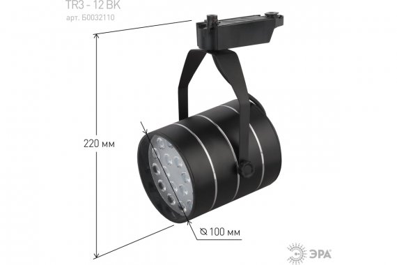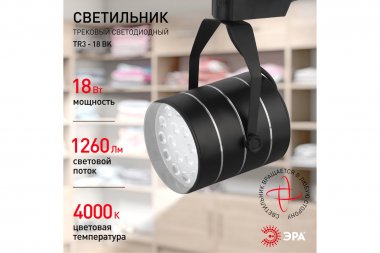 Эра Б0032111 Трековый светильник однофазный TR3 - 18 BK светодиодный SMD 18Вт