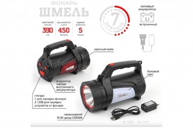 Технические характеристики Армия России Шмель PA-702 10Вт, боковой свет, маяк, USB, powerbank Б0033764