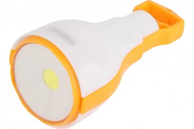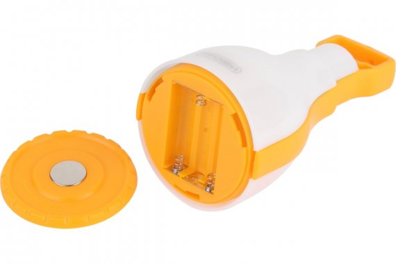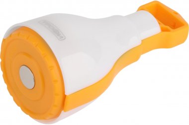Фонарь кемпинговый светодиодный Трофи KB-301 на батарейках с магнитом и крючком походный светильник оранжвый Кемпинговый фонарь KB-301 Трофи создан для того, чтобы обеспечить надежным источником света участников любого туристического похода. Конструкция фонаря включает в себя специальный крючок, при помощи которого его можно подвесить в палатке, машине или на дереве. Источником света в фонаре служат 48 мощных светодиодов современного поколения, которые обеспечивают непрерывное свечение на протяжении 30 часов. Фонарь имеет 2 режима работы: путем проворачивания лампы можно выбрать режим ночника (светильника) или ручного фонаря. Дальность луча составляет 20 метров, чего вполне достаточно, чтобы осветить пространство небольшого кемпингового лагеря. Источником питания в фонаре служат 3 батарейки типа ААА (в комплект не входят). Корпус из ударопрочного пластика позволит защитить фонарь от нежелательных внешних воздействий и продлит срок его службы.