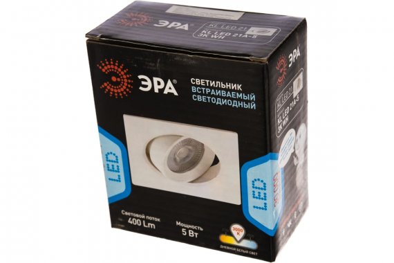 KL LED 21A-5 3K WH Светильник ЭРА светодиодный квадратный поворотн. LED SMD 5W 3000K, белый (100/160 Встраиваемый светодиодный поворотный светильник ЭРА