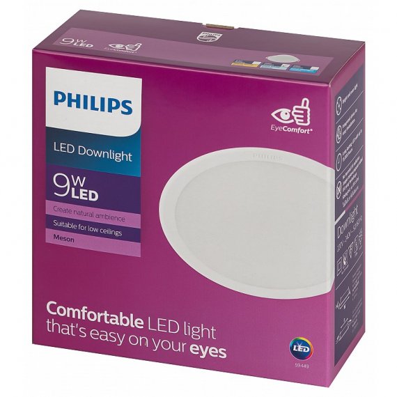 Светильник светодиодный встраиваемый Philips MESON 9Вт 4000K 220-240В D105 Встраиваемый светильник Meson применяется для организации общего и местного освещения в жилых домах и квартирах, а также в офисах и других общественных помещениях. Свет распределяется равномерно благодаря наличию рассеивателя. Изделие встраивается в подвесные потолочные конструкции. Лаконичное исполнение и универсальный белый цвет позволяют вписать устройство в большинство интерьеров.