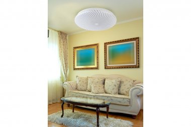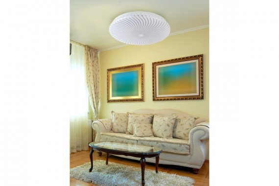 Дизайн рассеивателя заслуживает отдельного внимания. Динамичный узор идеально сочетается с круглым плоским корпусом. За счет этого электросветильник придаст гостиной, спальне или прихожей изыска.