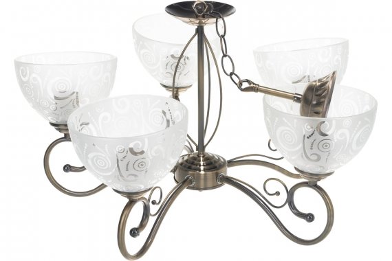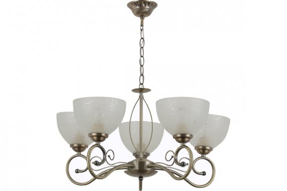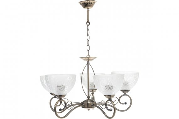 Люстра Rivoli 9006205 Loren P5 античная бронза 5хE27 40W Б0044455 - утончённая классика и безусловная красота. Плафоны люстры раскрыты наверх, к потолку, и напоминают чашки дорогого чайного сервиза. Каждая чашка изготовлена из стильного матового стекла и украшена оригинальным цветочным орнаментом, а металлический каркас - словно одно из произведений искусства, выставляемых в лучших музеях Рима. Тонкие, невесомые, полные молодости и жизни - люстра будто переместились во времени и пространстве прямиком из старых фильмов с Софи Лорен