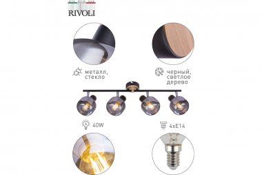 Технические характеристики Rivoli W4, черный/светлое дерево, 4хE14, 40W 7026704 Б0047100