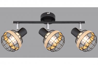 Светильник настенно-потолочный спот Rivoli Fedora 7033-703 3 х E14 40 Вт поворотный Оригинальные светильники-споты для любого пространства от гостиной и спальни до прихожей и коридора. Сетчатый металлический плафон чёрного цвета декорирован натуральным льняным жгутом. Выверенные геометрические формы смягчаются и оживают благодаря экологичному акценту в виде бечёвки из природного материала. Отличный вариант для любого современного пространства, где ценится минимализм, практичность и стильные детали. Споты Rivoli Fedora прослужат долго за счёт качественного поворотного механизма. Коллекция представлена спотом на 3 лампы.