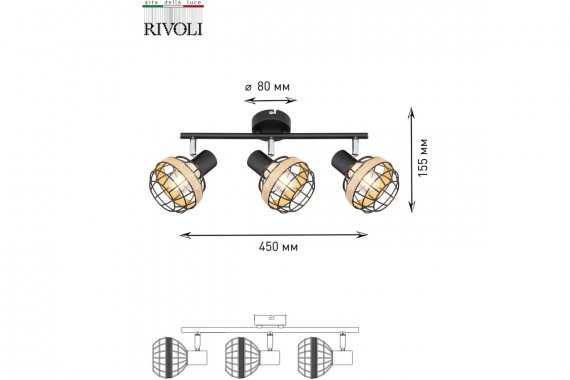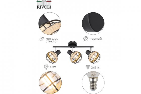 Технические характеристики Rivoli Fedora W3, черный, 3хE14, 40W, 6/72 Б0047141