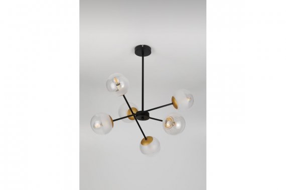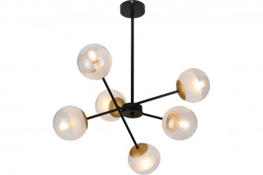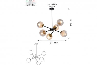 Люстра Rivoli Areta 3075-306 6 х E14 40 Вт модерн Как напоминание о том, что в жизни баланс нужен во всём, серия Areta уравновесит интерьер своими идеальными комбинациями. Кто сказал, что плафон должен быть только матовым или только прозрачным. Мы смело соединяем оба эти свойства и получаем уникальное оформление и яркое освещение. Второе гармоничное сочетание тандем чёрного и золотого уже стало новой классикой. Коллекция представлена потолочной люстрой на 6 ламп.