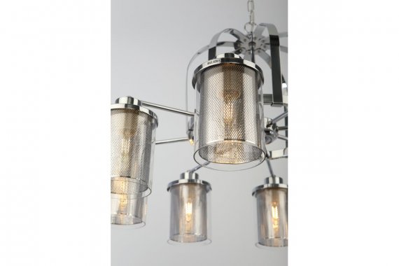 Люстра Rivoli Adriana 4058-208 8 х E27 40 Вт дизайн Большая люстра в гостиную Rivoli Adriana выполнена в современном замковом стиле. Чтобы ярко осветить площадь до 24 м2, вкрутите в патроны данной люстры 8 ламп Е27 40 Вт. Люстра подвесная Adriana Rivoli подходит для просторных пространств. Высота подвеса люстры, декорированного цепочкой, может регулироваться при установке люстры. Для стиля лофт металлическая 8-рожковая люстра - великолепное решение. Восемь плафонов из перфорированного металла и прозрачного стекла объединены минималистичным металлическим ободом. Для стойкого гальванического окрашивания этой современной люстры в спальню, люстры в загородный дом выбран трендовый цвет хром. Rivoli Adriana - коллекция итальянского бренда Rivoli, в которую входят люстры подвесные под 3, 5 и 8 ламп, а также бра настенное под 1 лампу. Артикулы, чтобы посмотреть фото коллекции, заказать люстры и бра: 4058-203, 4058-205, 4058-208, 4058-401. Купить дизайнерскую люстру сегодня доступно каждому.