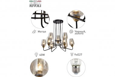 Технические характеристики Rivoli Gera P9, черный/золото, 9хE27, 40W, 14 Б0047325