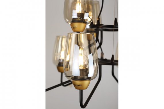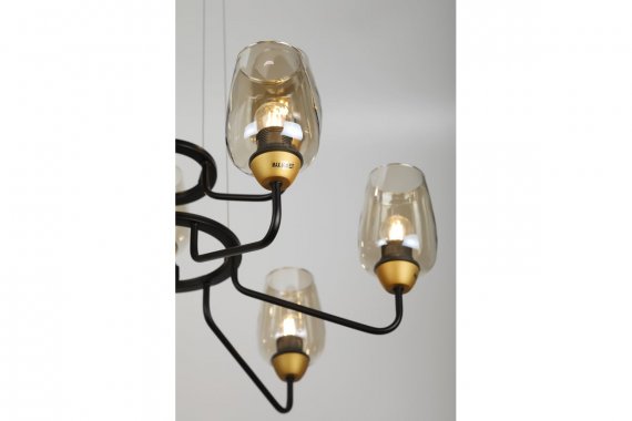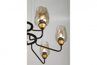 Люстра Rivoli Gera 4065-209 9 х E27 40 Вт дизайн Древние греки верили, что Гера сохранит их домашний очаг и поддержит верность в семье. Бутонообразные плафоны с лёгким тонированием бережно заключат лампы в стеклянные объятия, а металлическая чёрная арматура в лофт-исполнении создаст эффект надёжности и защиты от всех невзгод. Коллекция представлена 9-ти рожковой подвесной люстрой.