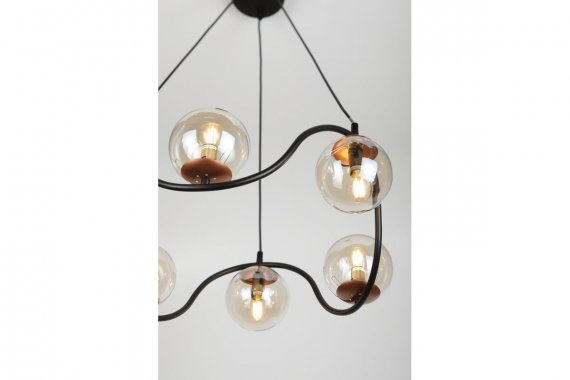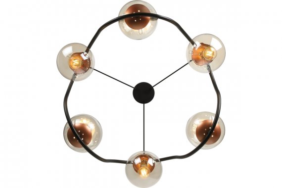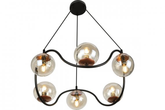 Люстра Rivoli Apollo 4073-206 6 х E14 40 Вт дизайн Древнегреческий бог Аполлон был не только красавчиком, но и покровителем искусств. Люстры Rivoli Apollo можно считать его детищем изящные изгибы надёжного чёрного каркаса усложнены медными деталями, невесомые прозрачные плафоны словно зависли на бесконечной восьмёрке символе вечности. Как настоящие произведения искусства, эта серия уже становятся легендарной. Коллекция представлена подвесной люстрой на 6 ламп.