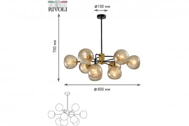 Люстра Rivoli Geba 4077-309 9 х E14 40 Вт дизайн Нежная и жизнерадостная серия с фигурными литыми плафонами и деталями цвета античного золота всё, как и положено богине юности. Древние Греки знали толк в красоте и полноте жизни: округлые плафоны люстр Rivoli Geba в форме плодов фундука имеют рельефные углубления, в которых задорно играют световые лучи. Коллекция прредставлена 9-ти рожковой люстрой.