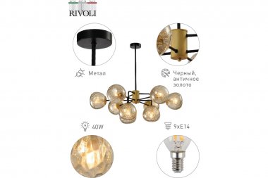 Технические характеристики Rivoli Geba P9 черный/античное золото, 9хE14, 40W, 8 Б0047339