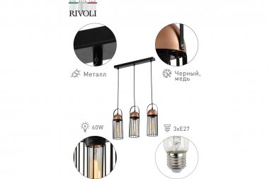 Технические характеристики Rivoli Anemon P3, черный/медь, 3хE27, 40W, 40 Б0047362