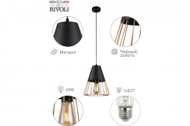 Технические характеристики Rivoli Kasimira P1 черный/золото 1хE27 60W 10/450 5050201 Б0047529