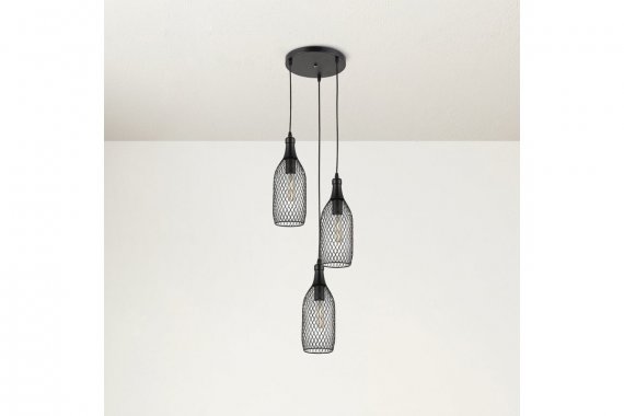 Светильник подвесной (подвес) Rivoli Martina 5074-203 3 х E27 60 Вт лофт - кантри Оригинальные дизайнерские подвесы с металлическими плафонами бутылочной формы. Изготовлены на высококачественном оборудовании методом точечной сварки. Торжество идеальной удлинённой формы и самобытного рисунка-сетки. Коллекция представлена подвесом на 3 лампы.