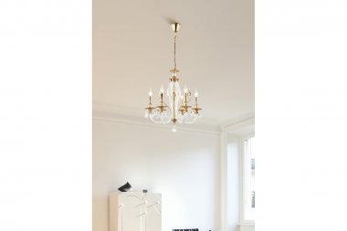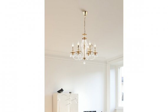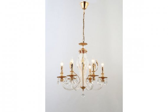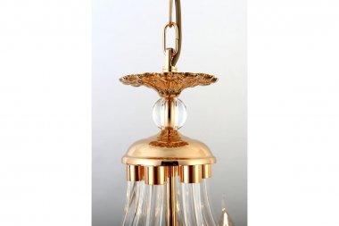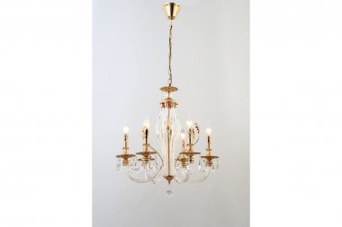 Люстра Rivoli Melanie 1020-206 6 х Е14 40 Вт хрусталь классика Rivoli Люстра потолочная / Светильник потолочный светодиодный для кухни, гостиной, в детскую, спальню Серия, воплощающая в себе праздник, радость, солнце! Стойкое золотое покрытие канделябров и флористичный декор в любой сезон дарят приятные мысли о лете, тепле и природе. Особую нежность люстрам и бра Melanie придают прозрачные капли-кристаллы, напоминающие об утренней росе. Коллекция представлена 6-ти рожковой подвесной люстрой на цепи.