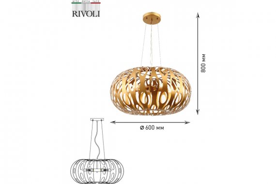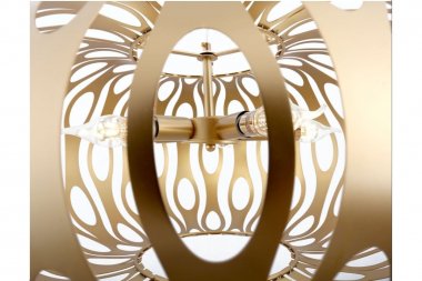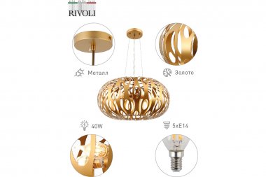 Люстра Rivoli Mitzi 4079-205 5 х Е14 40 Вт дизайн Со светильниками Rivoli Mitzi комната будет наполнена воздухом, светом и стилем. Благодаря уникальному методу высокоточной лазерной резки, создателям этой серии удалось добиться невесомости металла и особой плавности линий узора. Благородный золотой цвет абажура с перламутровым напылением это солнце, навсегда поселившееся в вашем доме! Коллекция представлена подвесной люстрой на 5 ламп.