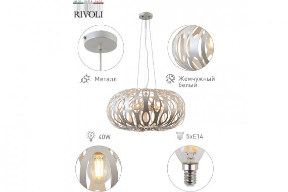 Технические характеристики Rivoli Meike Р5 жемчужный белый 5хЕ14 40W 6 4080205 Б0047924