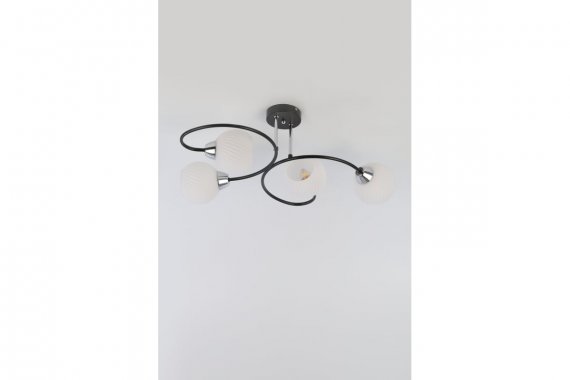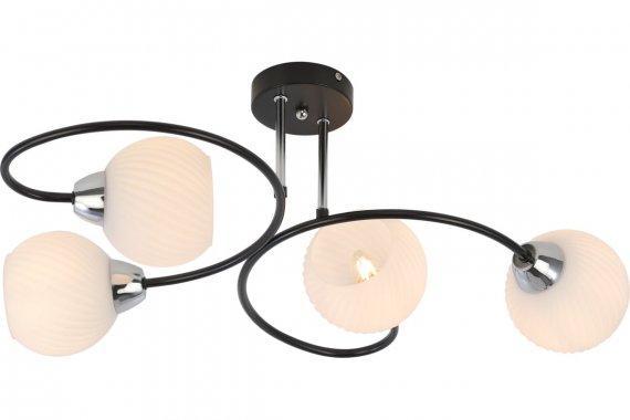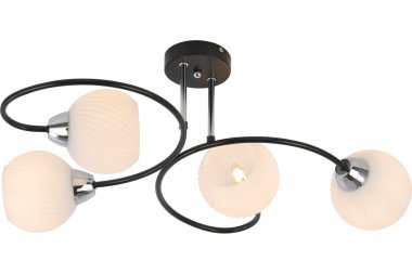 Люстра Rivoli Gisela 4083-304 4 х E27 40 Вт модерн Rivoli Gisela (арт. 4083-304) универсальные люстры потолочные с 4 плафонами. Отличаются эффектной игрой контрастов: черная арматура и белые плафоны. В единую композицию детали объединяют их мягкие округлые формы. Важное преимущество этих современных люстр их успешное применение в вытянутых помещениях.Чёрный металл корпуса люстры Gisela уравновешен хромированными элементами. Это стильное сочетание дополнено матовыми рельефными плафонами. Люстры на потолок Gisela от итальянского бренда Rivoli актуальны для пространств любого стиля классический, лофт, минимализм, эклектика.Заказывайте эти красивые люстры в гостиную, спальню, столовую, на кухню площадью около 12 м?. Именно такие комнаты Gisela эффективно осветит без дополнительных источников света. Подходят лампы Е27 на 40 Вт это самые распространенные бытовые лампочки. Люстры Rivoli Gisela хорошо смотрятся в тандеме с точечной подсветкой. Матовые стеклянные плафоны мягко рассеивают свет, исключают блики. Их боковое расположение одно из самых модных решений в дизайне светотехники.Для помещений большей площади стоит купить люстры Rivoli Gisela с 6 плафонами (арт. 4083-306).