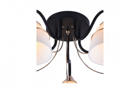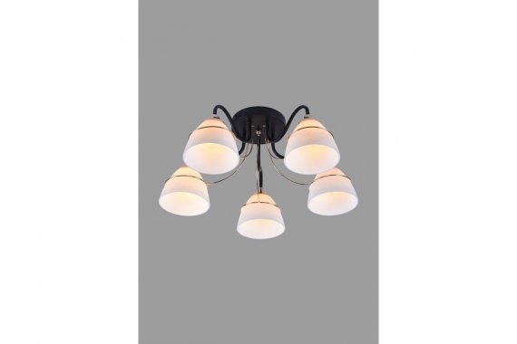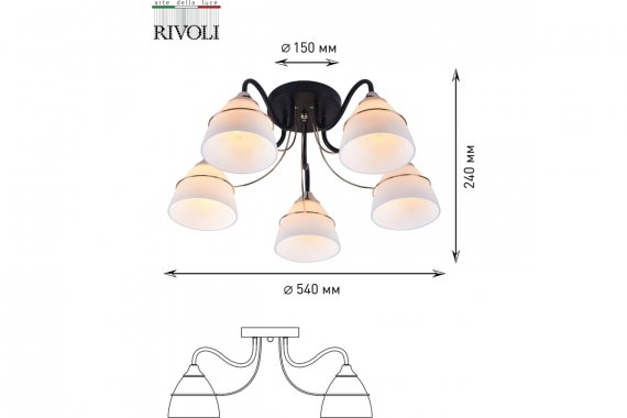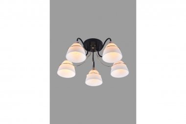 Люстра Rivoli Karola 9019-305 5 х E27 60 Вт классика Универсальные люстры, близкие к классическому стилю. Подойдут большинству интерьеров, будут хорошо смотреться в любой комнате гостиная, спальня, детская, кухня, холл. Изящные золотые нити выигрышно подчёркивают универсальный союз чёрной арматуры и белых плафонов. Rivoli Karola создают качественное освещение, хорошо подсвечивая все части помещения. Практичный и красивый вариант, когда нужна хорошая базовая люстра на долгие годы. Коллекция представлена потолочной люстрой на 5 ламп.