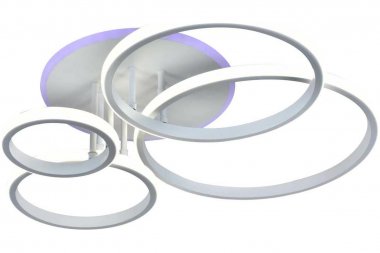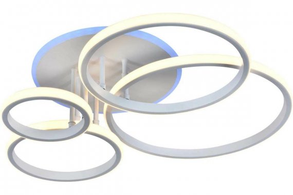 Светильник потолочный светодиодный Rivoli Carmen 6086-103 с пультом 120 Вт + 8 Вт 4000К - 6000К LED модерн Rivoli Carmen (арт. 6086-103) светильник светодиодный потолочный в металлическом корпусе универсального белого цвета. Функции этой красивой LED-люстры: плавная регулировка яркости, выбор цветовой температуры (3000 6000 К). Имеется разноцветная RGB-подсветка, которую можно использовать вместе с основным освещением или самостоятельно.LED-светильник на потолок Carmen от итальянского бренда Rivoli управляется дистанционно с помощью удобного пульта, поставляемого в комплекте. Доступно управление через смартфон.Размеры светодиодной люстры на потолок Rivoli Carmen - 615*605*195 мм. Современный геометричный корпус представляет собой эффектное сочетание светящихся окружностей разного диаметра. Яркий и ровный свет LED-люстры Carmen создают светодиоды последнего поколения, которые не тускнеют со временем. Металл люстры в гостиную Carmen имеет стойкое гальваническое покрытие. Потолочный LED-светильник Carmen прослужит вам долгие годы.