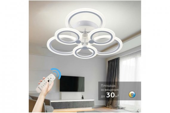 Светильник потолочный светодиодный Rivoli Blanca 6094-106 светодиодный с пультом 108 Вт 3000К-6000К LED модерн Rivoli Blanca - потолочный светодиодный светильник в стиле модерн. Размеры LED-люстры Blanca (арт. 6094-106) - 610*610*120 мм. Эта LED люстра на потолок способна качественно осветить большую площадь - до 30 м?. LED светильник Rivoli Blanca - прекрасное решение для квартиры-студии, кухни-гостиной, просторной детской комнаты. LED люстра потолочная Blanca имеет 6 светодиодных плафонов в форме кругов разного диаметра, что придает ей эффектный внешний вид. Дизайн создан итальянским брендом Rivoli. Светодиодный потолочный светильник Blanca поставляется с пультом дистанционного управления. Вам доступен выбор цветовой температуры, регулировка яркости света. Различная цветовая температура люстры сделает ваш быт максимально комфортным: уютный теплый свет, бодрящий холодный и нейтральный белый. Можно управлять люстрой через приложение смартфона. Купить LED-светильник европейского дизайна вы можете по доступной цене. Светодиодная люстра Blanca проста в монтаже и управлении.