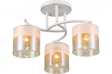 Люстра Rivoli Constancia 9081-303 3 * Е27 40 Вт модерн Rivoli Constancia (арт. 9081-303) - светлая дизайнерская люстра на потолок из металла и стекла. Бело-золотой корпус люстры окрашен в технике декоративного состаривания - удачное решение для создания стиля прованс и в целом уюта в доме. Плафоны с теплым золотистым тонированием имеют белый ободок в верхней части. Количество плафонов - 3. Они мягко рассеивают свет и качественно освещают площадь 9 м?. Арматура люстры аккуратная, с плавными линиями. Люстры потолочные Constancia от итальянского бренда Rivoli формируют в доме спокойное умиротворенное настроение.Люстры на кухню Constancia необходимо применять с лампами Е27 мощностью 40 Вт. Можно купить экономичные светодиодные лампы - они подойдут. Размер этой современной стильной люстры - 420*420*260 мм. Металл имеет стойкое покрытие для защиты люстры от выцветания и царапин.Коллекцию дополняет люстра 9081-305 для более просторных помещений в гостиную, спальню, загородный дом. Она создана под 5 источников света.