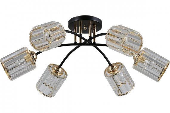 Люстра Rivoli Emanuelle 9101-306 6 * Е27 60 Вт модерн Rivoli Emanuelle (арт. 9101-306) - 6-рожковые люстры с фигурными стеклянными плафонами, имеющими геометричное рифление. Арматура этих современных люстр примечательна своим комбинированным окрашиванием в цвета черный и золото. Прозрачные плафоны декорированы золотистыми элементами. Для люстры Emanuelle подходят лампы с распространенным цоколем Е27, мощность - 60 Вт. Можно использовать как обычные, так и экономичные светодиодные источники света. Направленные вниз плафоны люстры качественно освещают площадь до 18 м?. Люстры потолочные Emanuelle хорошо смотрятся в классических гостиных, спальнях, столовых, на кухне, в квартирах-студиях, загородных домах. Удачны эти люстры для создания дизайнерских интерьеров в стиле модерн. Стоит купить такие люстры в спальню или на кухню, если вам нравится сочетание традиций и новаторского подхода. Коллекция Emanuelle от итальянского бренда Rivoli дополнена люстрой с 8 лампами (арт. 9101-308) для основного освещения больших помещений.