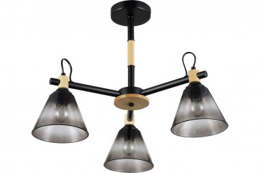 Люстра Rivoli Elmira 9117-303 3 * Е27 40 Вт модерн Elmira - дизайнерские люстры из металла, дерева и стекла. Выполнены в стиле лофт-кантри и отлично подходят для популярных интерьеров. Созданы итальянским брендом Rivoli. Стеклянные тонированные плафоны люстры - одна из изюминок коллекции, в которую входят люстры потолочные под 3 лампы (арт. 9117-303) и под 5 ламп (арт. 9117-305). Люстры Rivoli Elmira будут удачны для интерьеров в стиле лофт, кантри, модерн, подойдут эти люстры в гостиную в скандинавском стиле. В каркасных люстрах Rivoli Elmira немало интересных деталей. Элементы светлого дерева в контрасте с черным матовым металлом создают неповторимый внешний вид люстры. Арматура люстры проста и минималистична. Плафоны имеют глубокую сложную тонировку, есть эффектный декоративный вывод провода над плафонами. Для люстры на потолок Elmira подойдут лампы распространенного цоколя Е27, мощность - 40 Вт. Данная люстра 3-рожковая качественно осветит площадь 9 м?. Отличный вариант люстры на кухню, спешите купить!