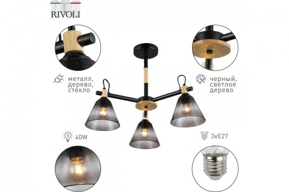 Технические характеристики Rivoli Elmira 9117303 3 Е27, 40 Вт, модерн Б0053431
