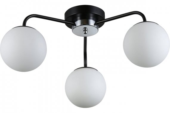 Люстра Rivoli Florentina 9118-303 3 * Е27 40 Вт модерн Rivoli Florentina (арт. 9118-303) универсальные люстры потолочные с 3 плафонами. Отличаются эффектной игрой контрастов: лаконичная черная арматура и белые круглые плафоны. Важное преимущество этих современных люстр - сочетание высокого качества и доступной цены. Черный металл корпуса Florentina уравновешен хромированным элементом в основании люстры. Люстры на потолок Florentina от итальянского бренда Rivoli актуальны для пространств любого стиля - классический, лофт, минимализм, эклектика. Заказывайте эти красивые люстры в гостиную, спальню, столовую, на кухню площадью до 9 м?. Такие комнаты Florentina эффективно осветит без дополнительных источников света. Подходят лампы Е27 на 40 Вт - это самые распространенные бытовые лампочки. Люстры Rivoli Florentina хорошо смотрятся в тандеме с точечной подсветкой. Матовые стеклянные плафоны мягко рассеивают свет, исключая блики. Для помещений большей площади стоит купить люстры Rivoli Florentina с 5 плафонами (арт. 9118-305).