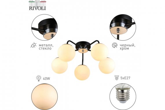 Технические характеристики Rivoli Florentina 9118305 5 Е27, 40 Вт, модерн Б0053434