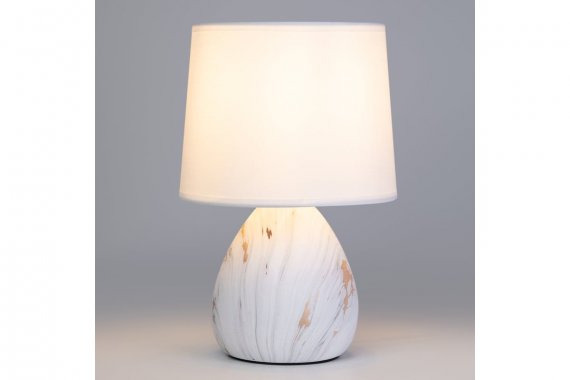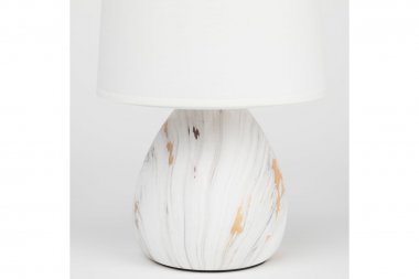 Настольная лампа Rivoli Damaris D7037-501 1 * Е14 40 Вт керамика белая с золотом с абажуром Настольная лампа Rivoli Damaris (арт. D7037-501) - красивое и практичное решение для вашего дома. Лампы настольные создают в помещении уют и комфортную атмосферу для отдыха. Данная лампа настольная от европейских дизайнеров имеет классический белый абажур из качественной ткани. Основание лампы изготовлено из керамики с расцветкой под мрамор в светлых тонах с яркими золотыми прожилками. Дизайн лампы отличается целостностью форм и плавными линиями. Настольная лампа Rivoli Damaris выполнена в модном эко-стиле. Такая лампа настольная понравится человеку любого возраста, будет по достоинству оценена человеком с хорошим вкусом, любящим природу и натуральные материалы. Если вы ищете подарок маме, подарок бабушке, подарок подруге, подарок другу, настольная лампа Damaris от итальянского бренда Rivoli - ваш правильный выбор. Коллекция Rivoli Damaris дополнена настольной лампой в цвете черный с белым (арт. 7037-501).