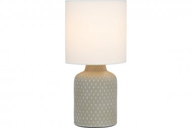 Настольная лампа Rivoli Sabrina 7043-501 1 * Е14 40 Вт керамика серая с абажуром Rivoli Sabrina (арт. 7043-501) - настольный светильник бытовой интерьерный с тканевым абажуром. Дизайн создан в Италии в соответствии с современными тенденциями оформления интерьеров. Настольная лампа Sabrina от итальянского бренда Rivoli изготовлена из керамики и ткани в актуальном эко-стиле. Керамическое основание имеет геометричные узоры, в которых угадываются восточные мотивы. Базовый цвет с легкостью впишет этот дизайнерский настольный светильник в любой интерьер. Настольные лампы Sabrina хороши для стилей классика, винтаж, восток, модерн, ретро. Важное преимущество, отличающее данные лампы настольные - натуральные материалы. Лампа настольная Sabrina с удобным выключателем на проводе является переносной. Легко переставлять из комнаты в комнату, выбирать для светильника самое удачное место в помещении - без демонтажа и за считанные секунды. Для работы настольной лампы нужно только вкрутить лампочку Е14 40 Вт и вставить вилку в сеть. Подходят экономичные светодиодные источники света. Коллекция Rivoli Sabrina дополнена настольными лампами в белом цвете (арт.7043-502), в коричневом (арт. D7043-501) и черном (арт. D7043-502).