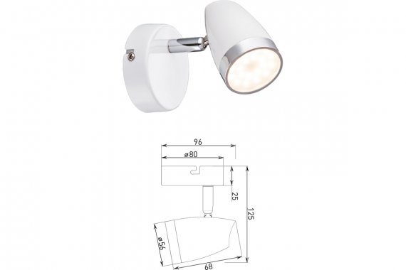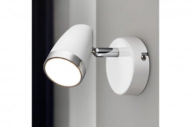 Светильник настенно-потолочный спот Rivoli Kelly 6155-701 светодиодный LED 1 х 4 Вт 3200К поворотный Rivoli Kelly (арт. 6155-701) - универсальное поворотное LED бра белого цвета с хромированными деталями. Размеры бра - 125*80*96 мм. Компактный и стильный настенно-потолочный светильник поможет вам красиво оформить интерьер и жить в доме с комфортом. Для этого ультрасовременного бра не нужна лампочка, освещение создают встроенные светодиоды. LED-технология способствует экономии электроэнергии. Цветовая температура - 3200 К. Это белый дневной свет с небольшим уклоном в сторону теплого. Именно такое освещение психологи рекомендуют для жилых комнат. В помещении с бра Rivoli Kelly вам будет уютно и комфортно! Спешите купить этот трендовый светильник-бра в спальню, детскую, прихожую, гостиную, кабинет. Rivoli Kelly - коллекция светильников итальянского дизайна. В ней вы найдете не только бра на стену, но и настенно-потолочные светильники с 2 плафонами (арт. 76704243), настенно-потолочные светильники с 3 плафонами (арт. 76704247). Все они работают на основе светодиодов.
