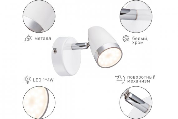 Эра Б0054681 Светильник настенно-потолочный спот Rivoli Kelly 6155-701 LED 1 х 4 Вт 3200К