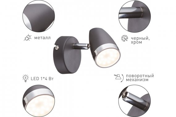 Эра Б0054687 Светильник настенно-потолочный спот Rivoli Joyce 6156-701 LED 1 х 4 Вт 3200К