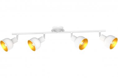 Светильник настенно-потолочный спот Rivoli Esmeree 7056-704 4 х Е14 40 Вт поворотный Rivoli Esmeree - настенно-потолочный спот с 4 трендовыми металлическими плафонами. Внешняя сторона плафонов имеет белое матовое покрытие, внутренняя - покрытие золотого цвета. Настенно-потолочные светильники Esmeree отличаются поворотной конструкцией плафонов, позволяющей индивидуально регулировать направление светового потока каждого плафона. В коллекции представлены споты поворотные под 1 лампу (арт. 7056-701), споты поворотные под 2 лампы (арт. 7056-702), споты поворотные под 3 лампы (арт. 7056-703), споты поворотные под 4 лампы (арт. 7056-704), люстра под 5 ламп (арт. 7056-735). Рекомендуемые источники света - Е14 мощностью 40 Вт. Размер данного настенно-потолочного спота под 4 лампы - 450*97*140 мм. Это прекрасное интерьерное решение для популярного стиля лофт. Освещаемая площадь - 12 м?. Настенно-потолочный спот из металла - прочный и надежный. Выглядит очень стильно. Благодаря гальванизации окрашивания защищен от царапин и выцветания. Спешите купить!